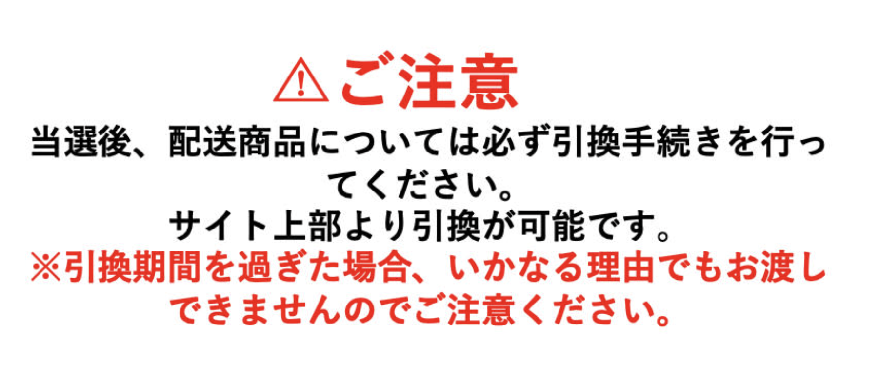 ※当選した商品を配送する「引き換え」とは別に、フォームの回答が必要です。