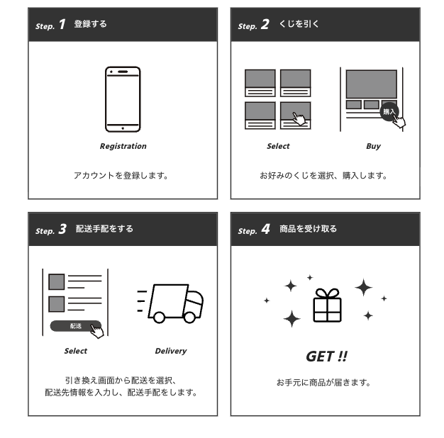 どこにお住まいでも、同じ料金でお届けします。期間内に複数回くじをご購入される場合、 最後にまとめてお引換えになると送料がお得になります。